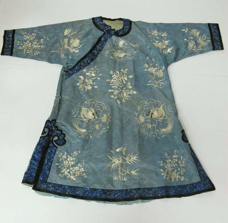 Chinese embroidered blue silk robe late qing dynasty