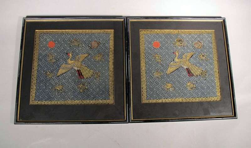Two embroidered Chinese civilian rank badges qing dynasty