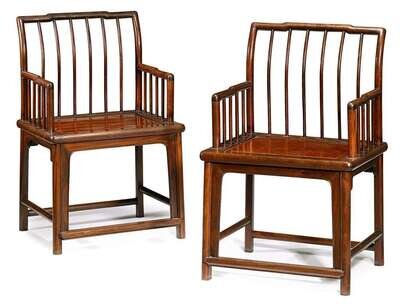 Pair of huanghuali and mixed hardwood low chairs 19th century