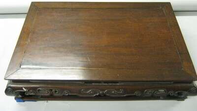 Waisted low table, beaded apron decorated with archaic scrolls, legs curving outward with hunchback stretchers.