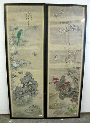 CHINESE SCHOOL MARKED MING DYNASTY, QING DYNASTY TWO PAINTINGS: WILDLIFE AND ROCKS