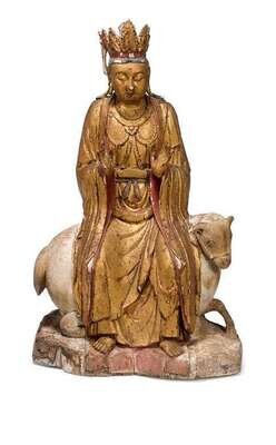 Chinese carved giltwood figure of Seated Marijushiri 18th century