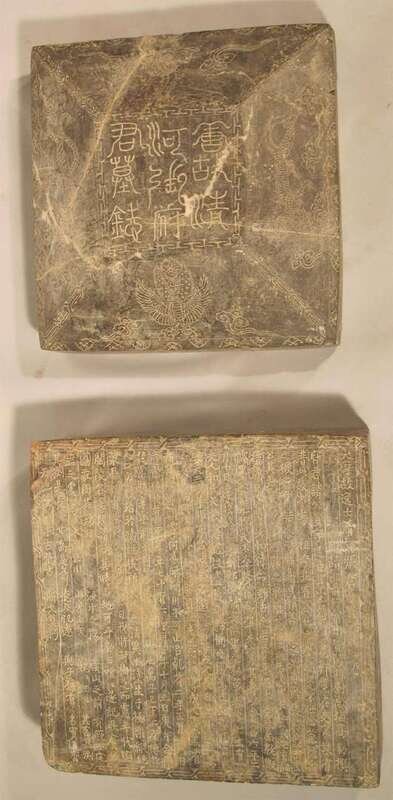 Two large Chinese incised stone plaques tang dynasty