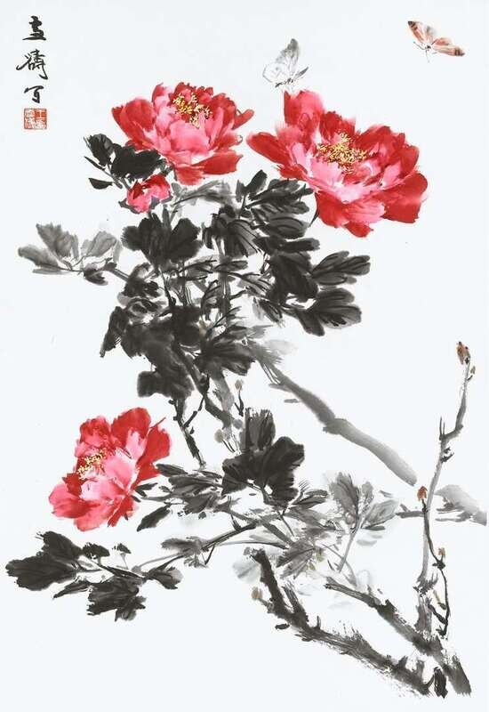 Hanging scroll, ink and color on paper, signed by Wang Xuetao with artist seal mark. Sight H: 32 1/2 inches x W: 20 1/2 inches