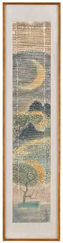 Ink and color on paper; signed by the artist and sealed; framed; Sight H: 48 in. W: 9 in.