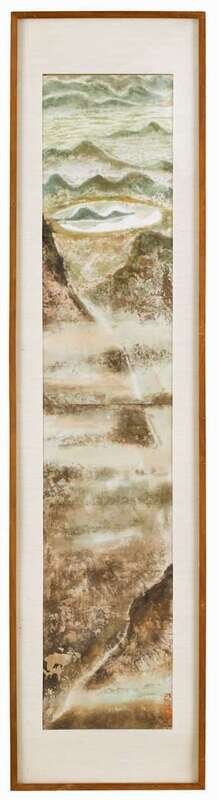 Ink and color on paper; signed by the artist and sealed; framed; Sight H: 48 in. W: 9 in.