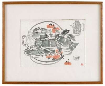 CHEN QIKUAN (1921-2007) DATED 1961 WINE CRABS
