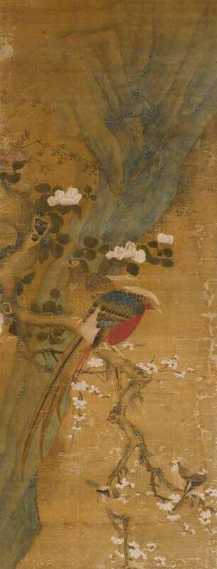 CHINESE SCHOOL MING DYNASTY PAIR OF PHEASANTS ON BRANCH