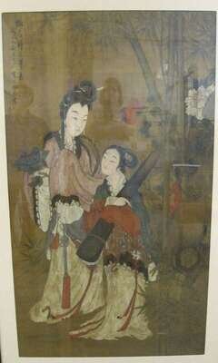 Framed, Ink and water color on silk, with inscription and signed by the artist and one seal mark; sight H: 55 1/2 inches x W: 32 inches