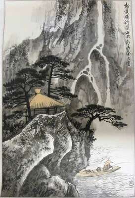 JIN DAXUE B.1943 DATED 2006 FISHERMAN IN THE MOUNTAINS