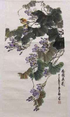 Hanging scroll, water color on paper, sight H: 35 X W: 17 1/4 inches