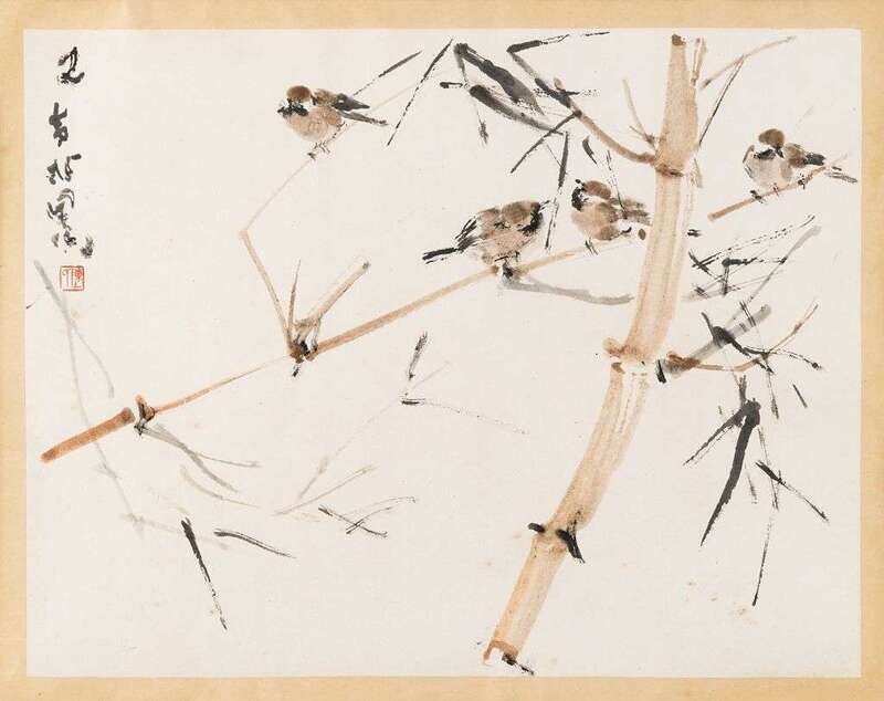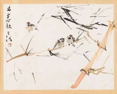 WEN CHEN HSI 1909-1991 BAMBOO AND SPARROWS
