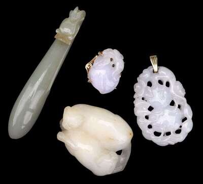 Group of four Chinese jade objects 19th century and later
