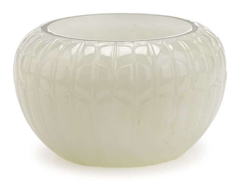A Chinese carved white jade alms bowl