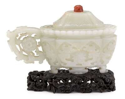 Fine Chinese white jade covered vessel 18th century
