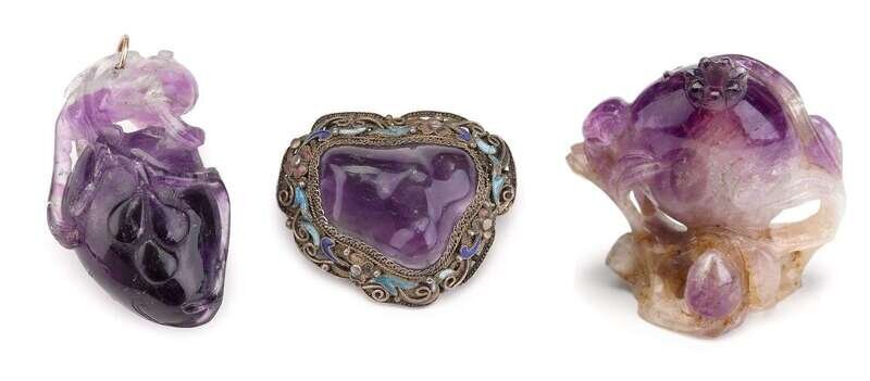 Three Chinese amethyst carvings 19th century