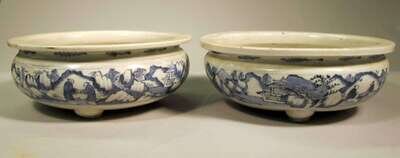 Pair of Chinese blue and white porcelain tripod planters transitional period