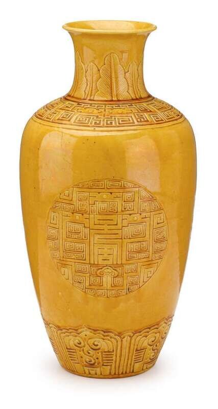 Chinese incised yellow glazed porcelain vase qianlong mark, late qing dynasty