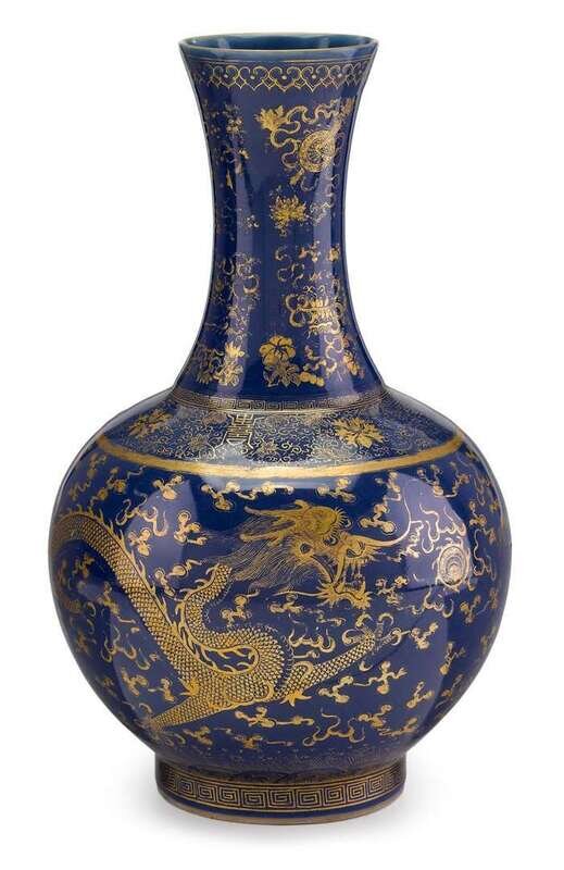 Chinese gilt decorated powder blue vase guangxu six character mark and of the period