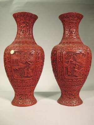 Pair of Chinese cinnabar lacquer vases late qing dynasty