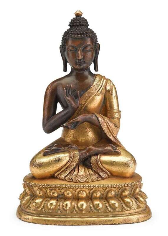 A Sino-Tibetan gilt and patinated bronze Buddha qing dynasty