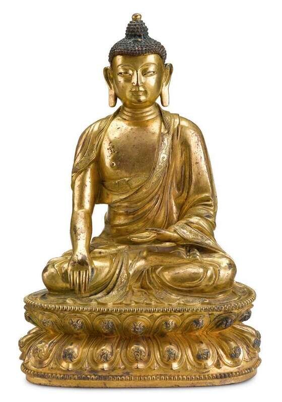 A large seated gilt bronze Shakyamuni buddha