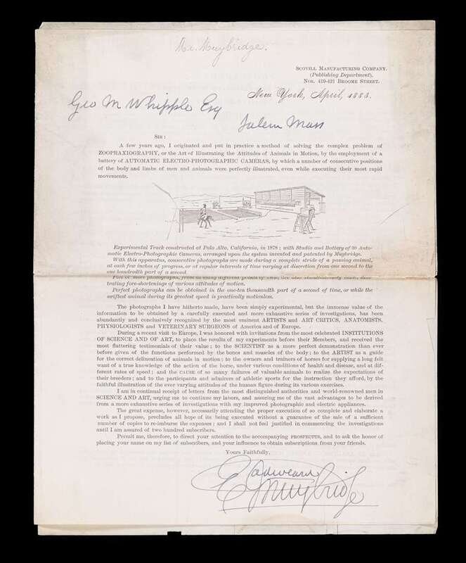 This lot will be accompanied by an artist signed and inscribed copy of the 1883 subscription prospectus for "The Attitudes of Man, the Horse and other Animals in Motion."