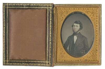 Half plate daguerreotype in full book-style velvet case, ca. 1850.