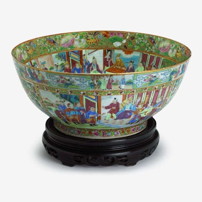 Chinese export porcelain rose medallion punch bowl late 19th century