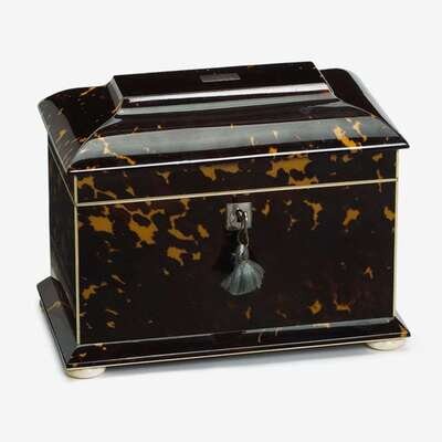 Fine Regency tortoiseshell and ivory tea caddy circa 1810, thomas lund, london