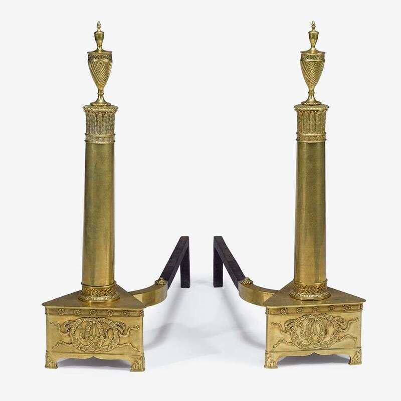 In the neoclassical style, of column and urn form, raised on triangular base cast with laurel wreaths below a border of rosettes. (2).