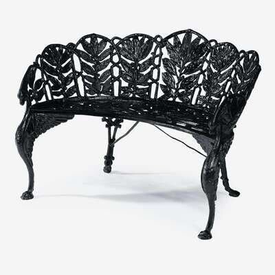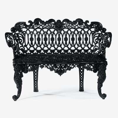 One of laurel pattern with swan form forelegs in the manner of Coalbrookdale; the other with interlaced oval back centered by a female mask over elaborately pierced scrolling seat and apron, raised on cabriole legs and scroll feet. (2).