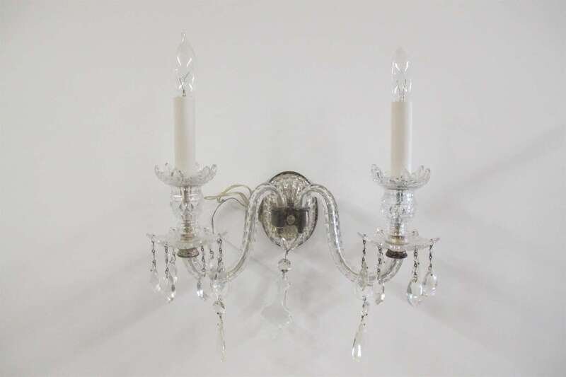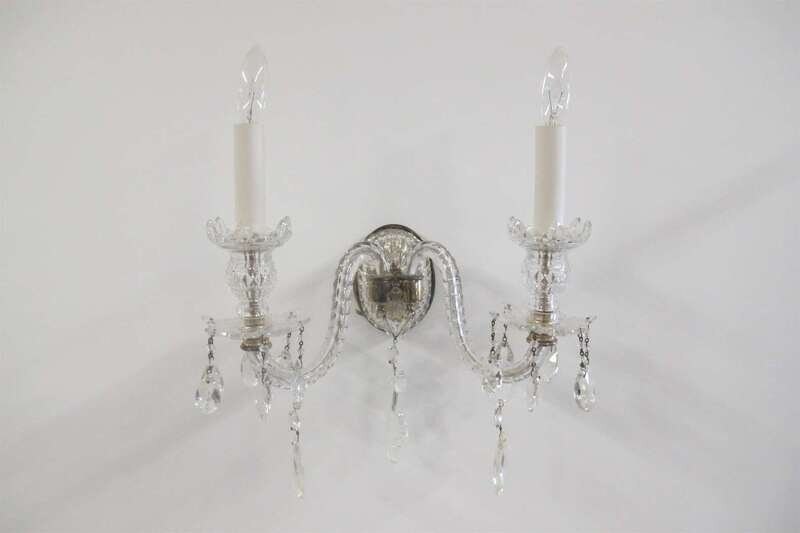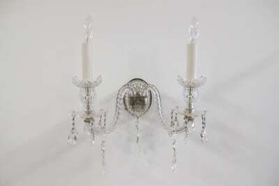 Pair of George III style two arm cut glass and lustre wall sconces late 19th/early 20th century