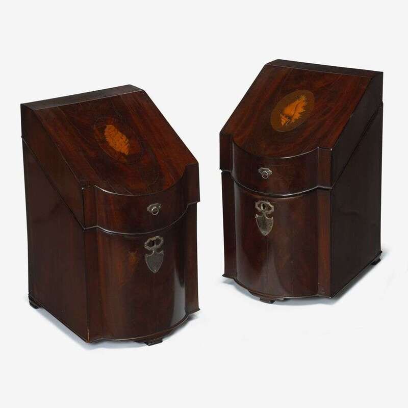 Pair of George III inlaid and silver mounted mahogany knife boxes early 19th century