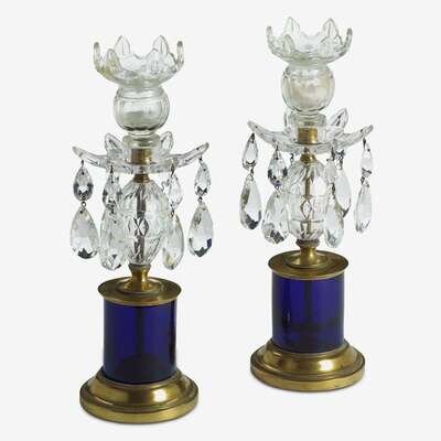 Pair of George III gilt bronze and cut glass candlesticks late 18th/early 19th century