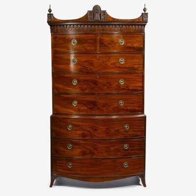 George III mahogany bowfront secretaire chest on chest early 19th century
