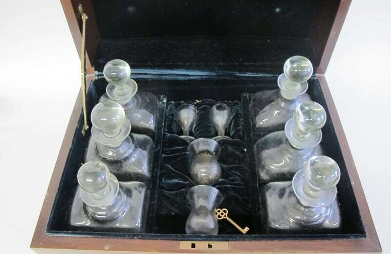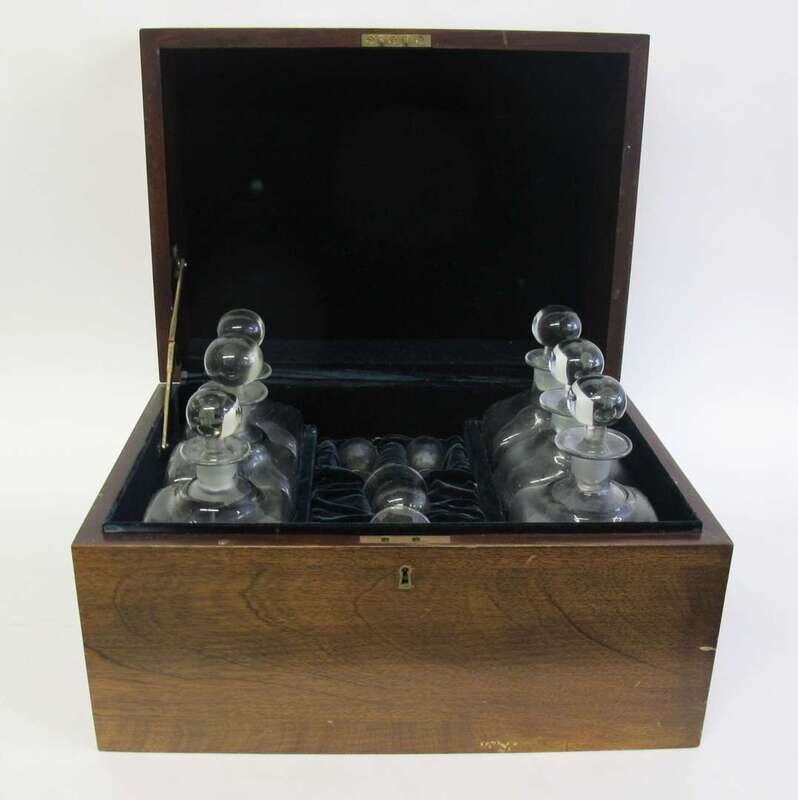 Victorian mahogany cased Pairpoint glass decanter set circa 1870