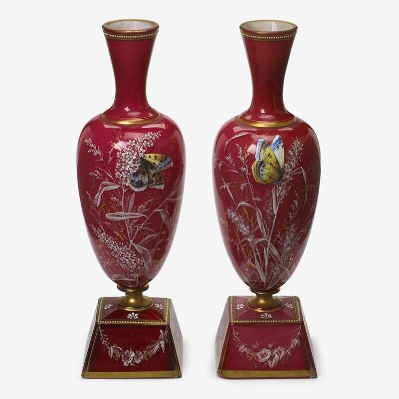 Pair of English Bristol enameled glass vases late 19th century