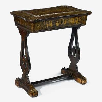 Chinese export black lacquer and gilt painted sewing table 19th century