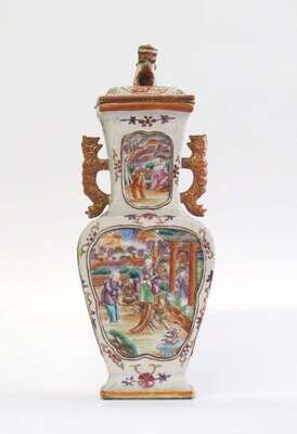 Chinese export porcelain mandarin rose palette twin-handled covered vase late 19th century