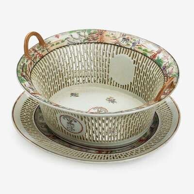 Chinese export armorial porcelain basket and undertray mid to late 18th century