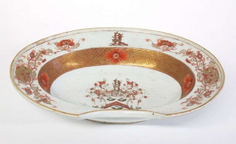 Fine Chinese export porcelain armorial barber's dish 18th/19th century, with the arms of horne
