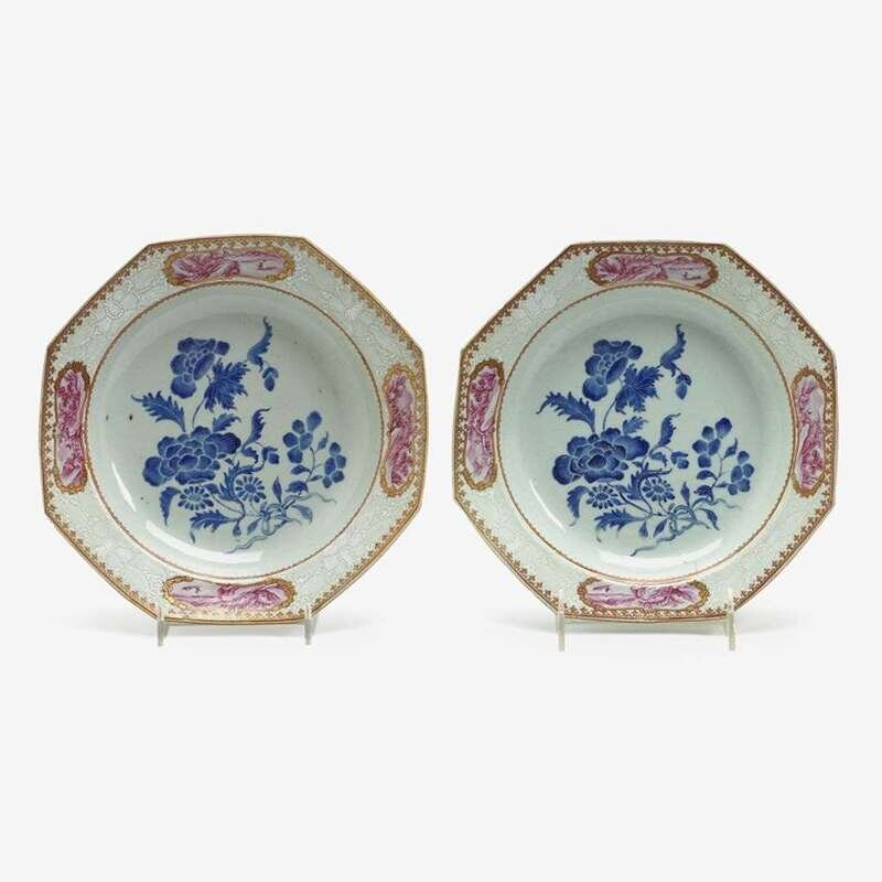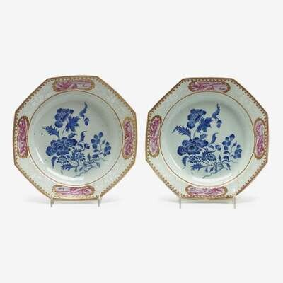 Pair of Chinese export porcelain octagonal dishes 18th century