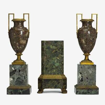 French marble and gilt bronze three piece mantle clock garniture early/mid 19th century