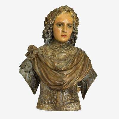 Italian parcel gilt and polychrome wooden bust of St. Michael 17th century