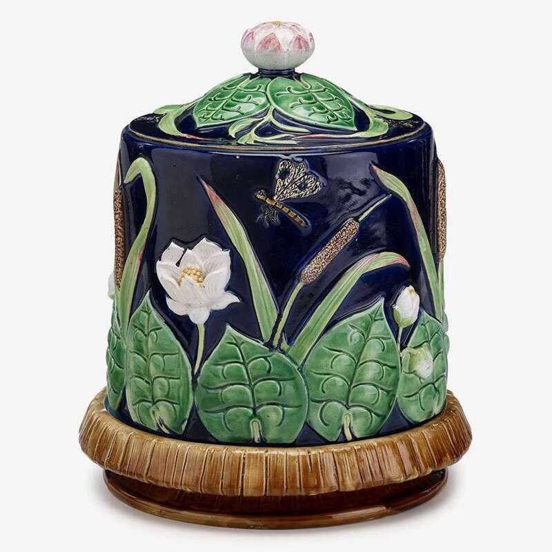 George Jones majolica cobalt blue cheese dome and stand circa 1874
