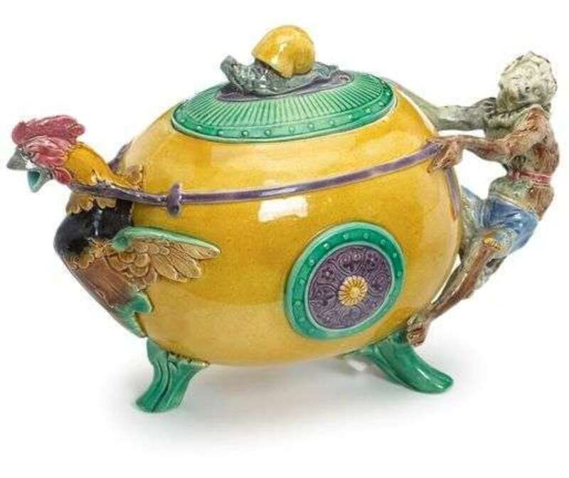 Minton majolica "Monkey & Cockerel" teapot circa 1876