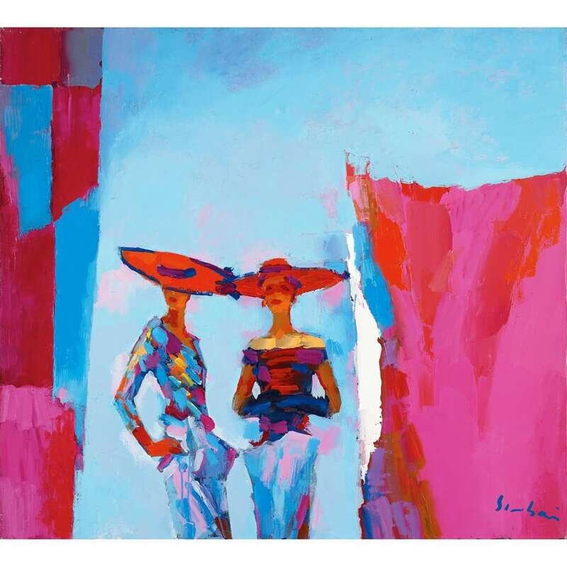 NICOLA SIMBARI (ITALIAN, 1927-2012) UNTITLED (TWO WOMEN WITH WIDE-BRIMMED HATS)
