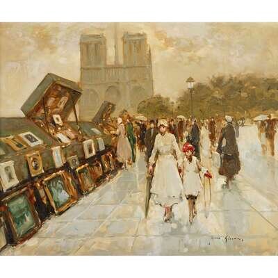 ANDRÉ GISSON (AMERICAN, 1921-2003) PROMENADE NEAR NOTRE DAME, PARIS