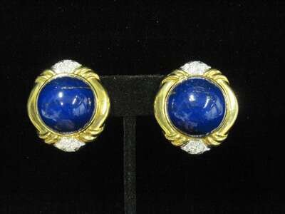 A pair of lapis lazuli, diamond and eighteen karat two-tone gold ear-clips